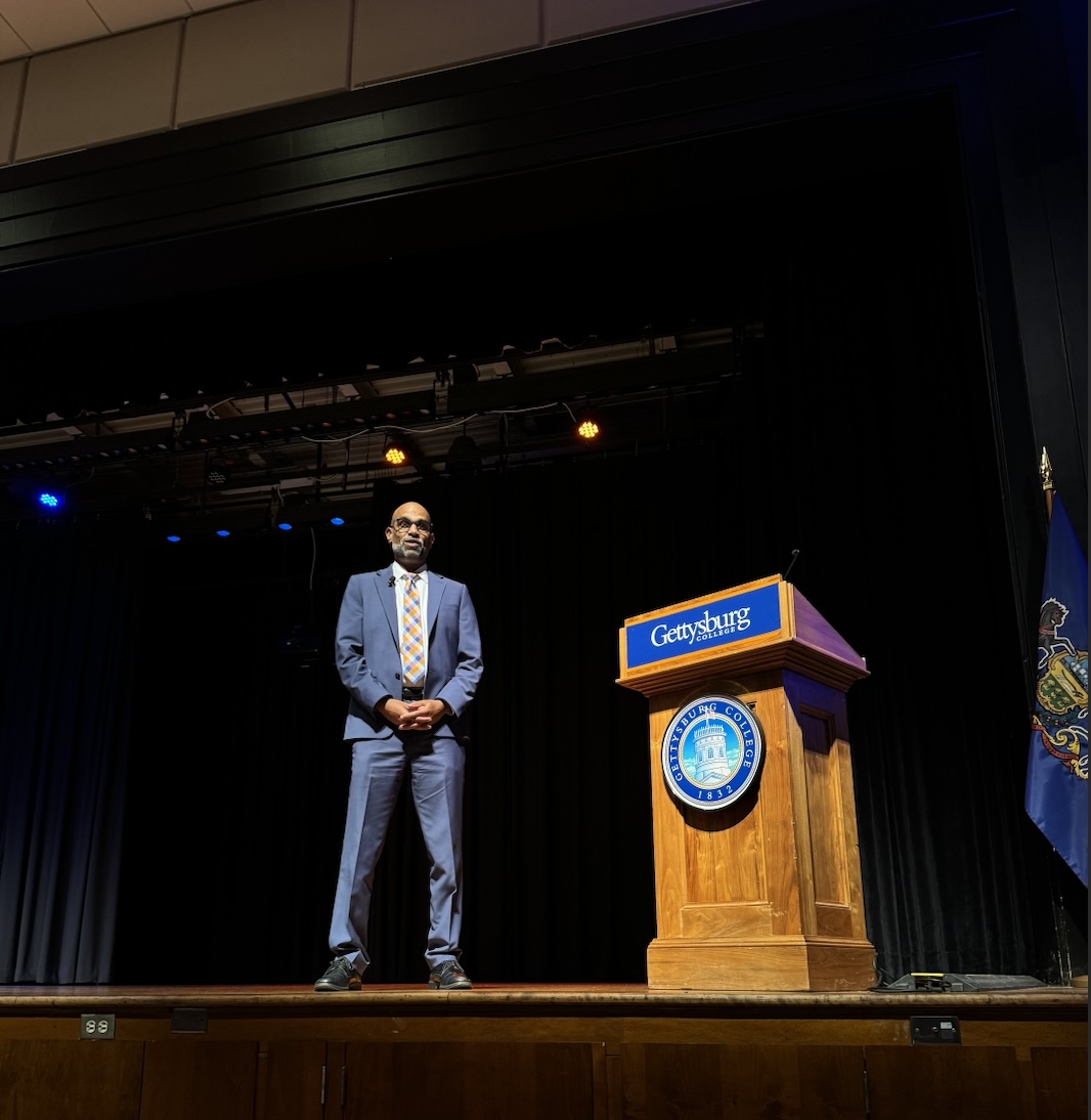 Gettysburg College launched its year-long “Conversations for Change” initiative this fall. Raj Vinnakota, President of Citizens & Scholars, served as the keynote speaker for the initiative’s kickoff. He addressed an audience of over 700 first-year students, emphasizing how civil discourse is essential for a healthy democracy and a crucial skill for success in campus life, the workplace, and our communities. Following his speech, there was a civil discourse exercise involving Raj and the leaders of both the Gettysburg College Republicans and Democrats. The event concluded with a moderated Q&A session with the students.